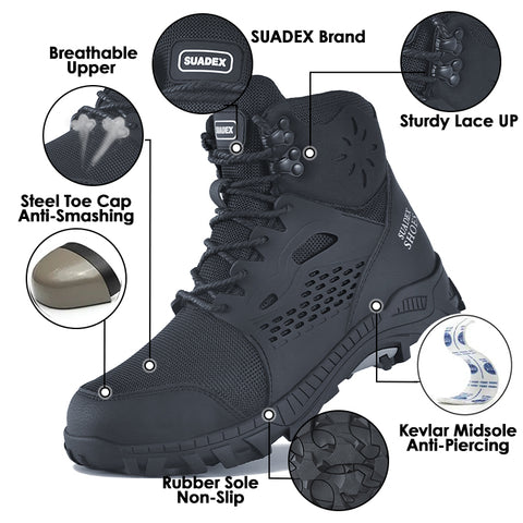 SUADEX®-A Steel Toe Shoe Brand, l'objectif est d'atteindre deux types de port d'une paire de chaussures pour les travailleurs. Il présente la beauté de la mode et garantit la sécurité. Les chaussures peuvent non seulement assurer la sécurité des pieds des porteurs, mais aussi économiser la peine de changer de chaussures lorsque les gens se rendent au travail. Ils conviennent à l'usure quotidienne. De nos jours, les gens de différents emplois doivent se précipiter autour des endroits de la ville lorsqu'ils travaillent. Il serait douloureux de tomber sur les choses sans une paire de chaussures confortables et sûres. Il ne serait pas adapté de faire le tour sans une paire de belles chaussures. Suadex a vu le jour pour aider à résoudre ces problèmes.