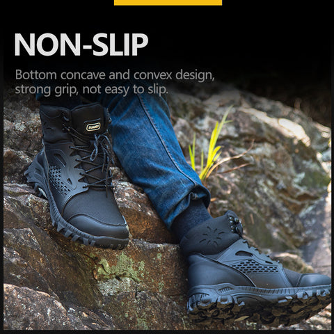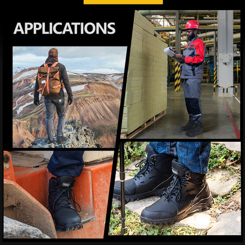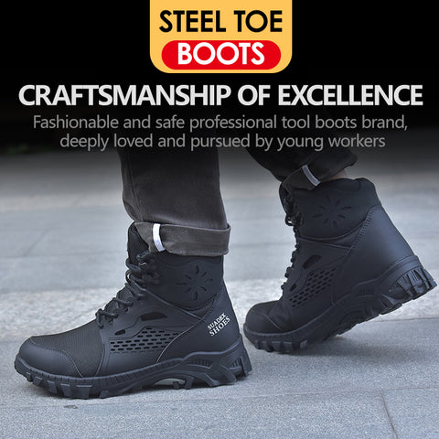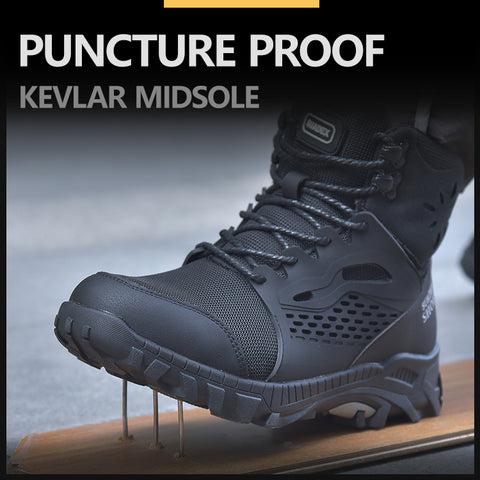 Le capuchon d'orteil de sécurité en acier et la couche de semelle intermédiaire à l'épreuve des balles protégeraient vos pieds de l'impact ou de la perforation, rencontre ou dépasse Normes de sécurité ASTM F2413-18.